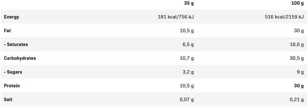 Den här krispiga, välsmakande baren innehåller hela 30 % vegetabiliskt protein och är helt fri från animaliska ingredienser. Med sin lätta våffelstruktur och utsökta hasselnötssmak är den både ett praktiskt och njutbart sätt att fylla på med protein, oavsett om du följer en vegansk eller vegetarisk kost.
