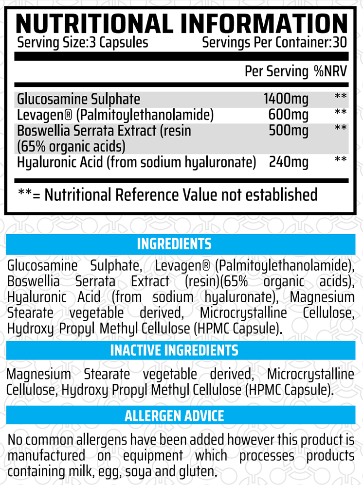 Chemical Warfare Armour Plated är ett avancerat ledtillskott framtaget för att stödja en aktiv och hälsosam livsstil. Varje portion innehåller 1400 mg glukosaminsulfat och 600 mg patenterad Levagen®, samt är förstärkt med Boswellia Serrata-extrakt och hyaluronsyra – en kliniskt doserad kombination för maximal ledfunktion.