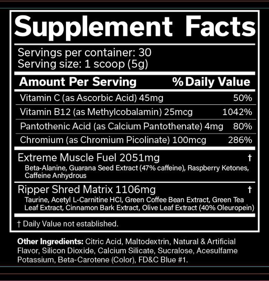 • Ripper Shred Matrix (1 g+) – med taurin, L-karnitin och grönt te-extrakt